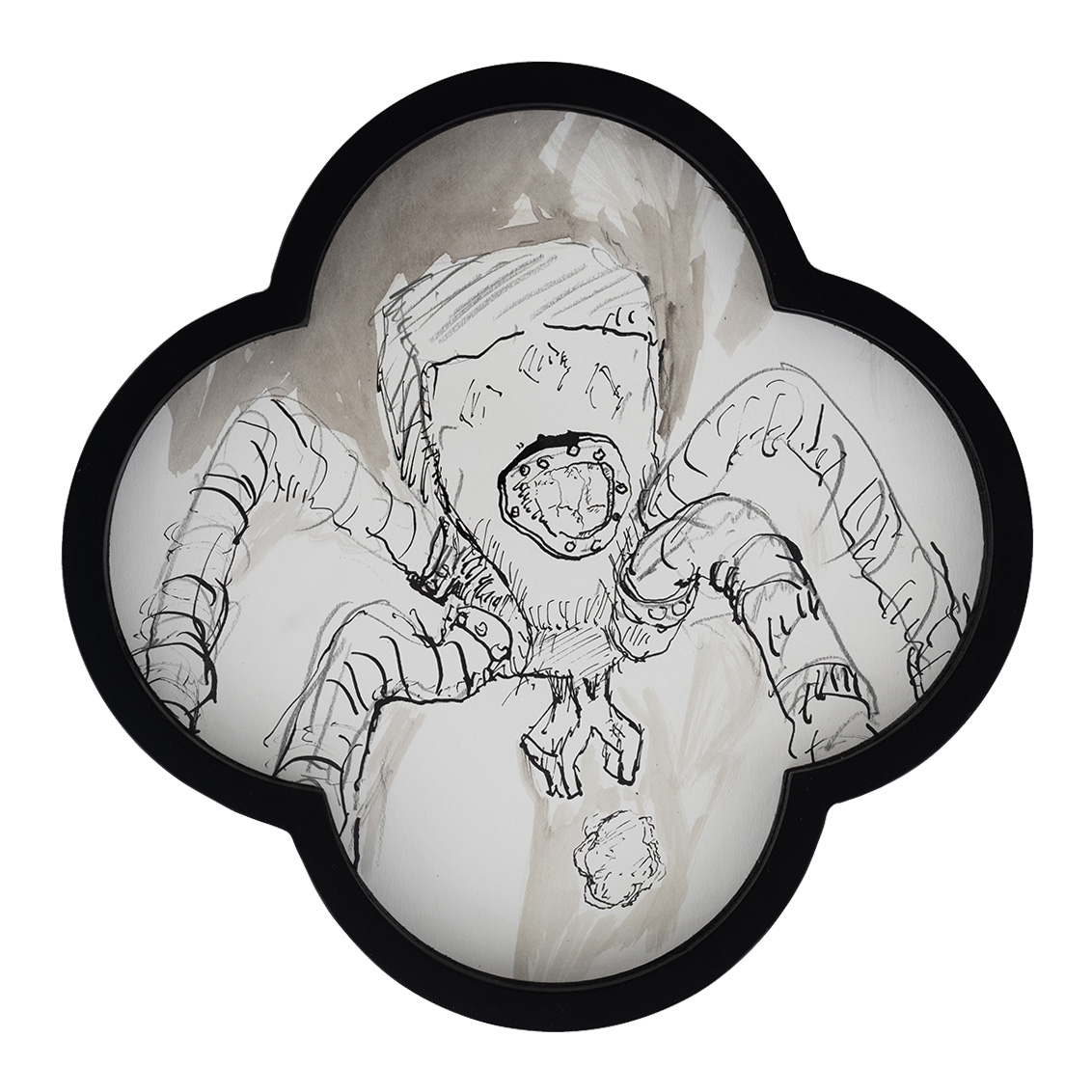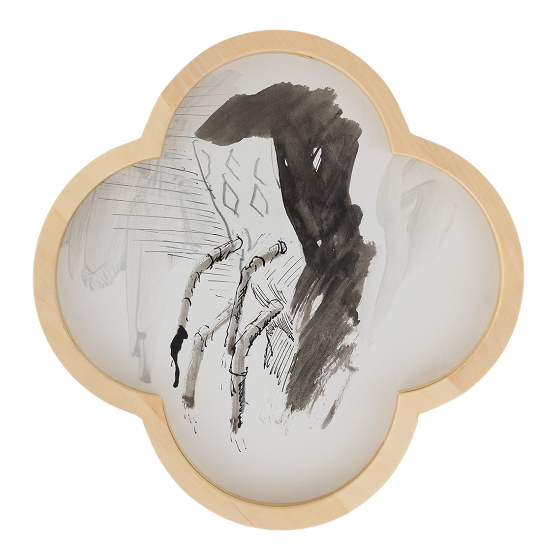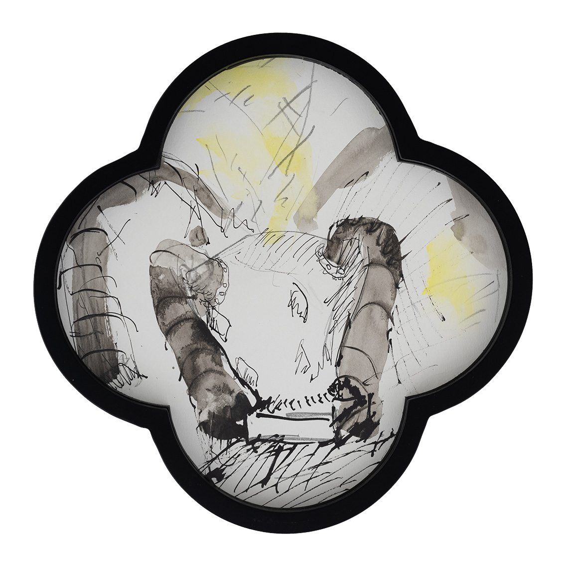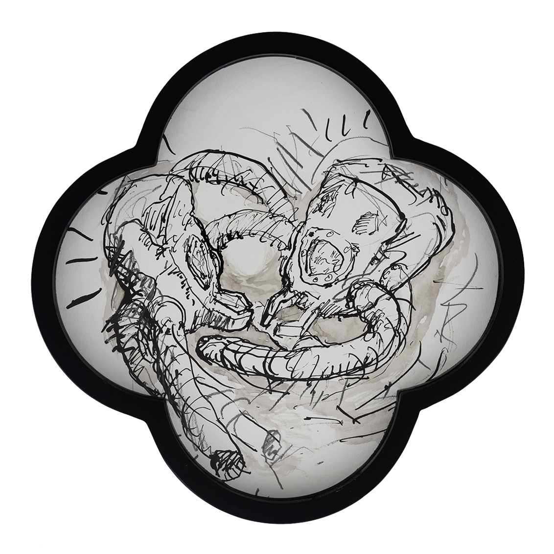 These drawings have a specific quatrefoil shape. Conceptually and aesthetically they emerge from the established visual language in Mind Gutter series.