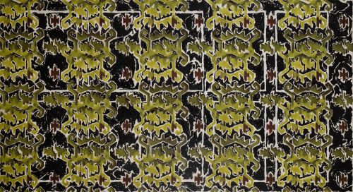 My childhood memories are filled with woven ornaments. They can be related to almost anything: concepts of life, death and beauty; feelings of mystery, adventure, fear and joy. I strated noticing tapestries around the same time I heard the old, Serbian expression hvatam zjale after which this series is named. Verb hvatam, hvatati means to catch, to grab. The word zjala is archaic. It means: hole, nothingness, emptiness, abyss, void, mouth cavity. It may also be related to Serbian verbs: zevati - to yawn, or zijati/zjati - to (idly) aimlessly stare (perhaps, with your mouth open). A person saying hvatam zjale wants to communicate that he or she is wasting their time (I’m sitting here doing nothing.). Zjale is a word that is not used often. When heard, we intuit that it’s archaic and it reminds us of, and even rhymes with the names of mythical creatures from Serbian folklore. To a child that hears the expression for the first time, it sort of sounds like someone’s busy trying to catch some unknown entity. It’s a century old gag of an unknown prankster who gave the nothing a name and an entity, and found a way to say I’m doing nothing like he’s a man on a mission. Soothing name for a set of paintings with a seemingly pretentious concept.